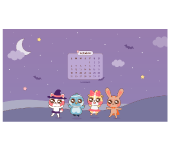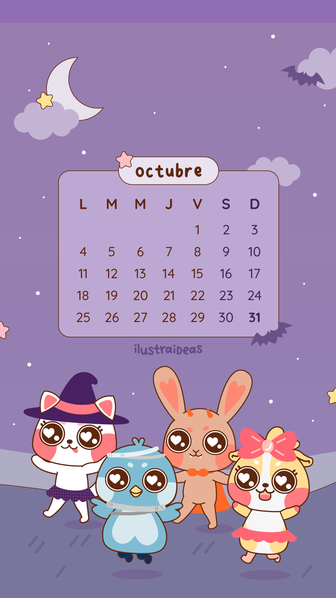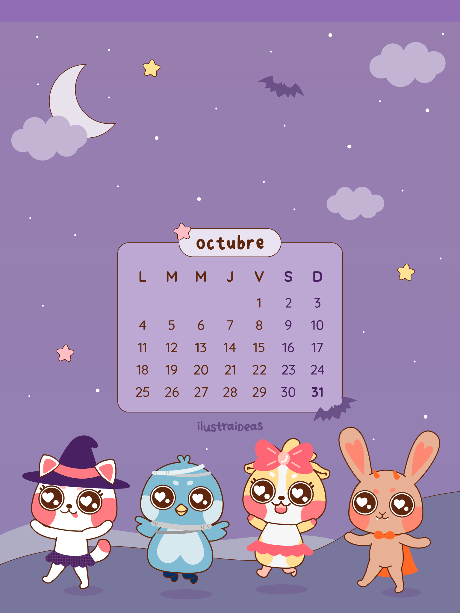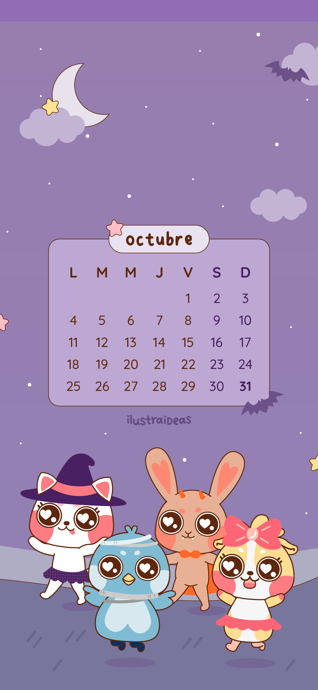 Descarga gratis un práctico y kawaii calendario de octubre 2021 sobre Haru y sus amigos celebrando Halloween 🎃. Disponible para celular, tablet y computador.