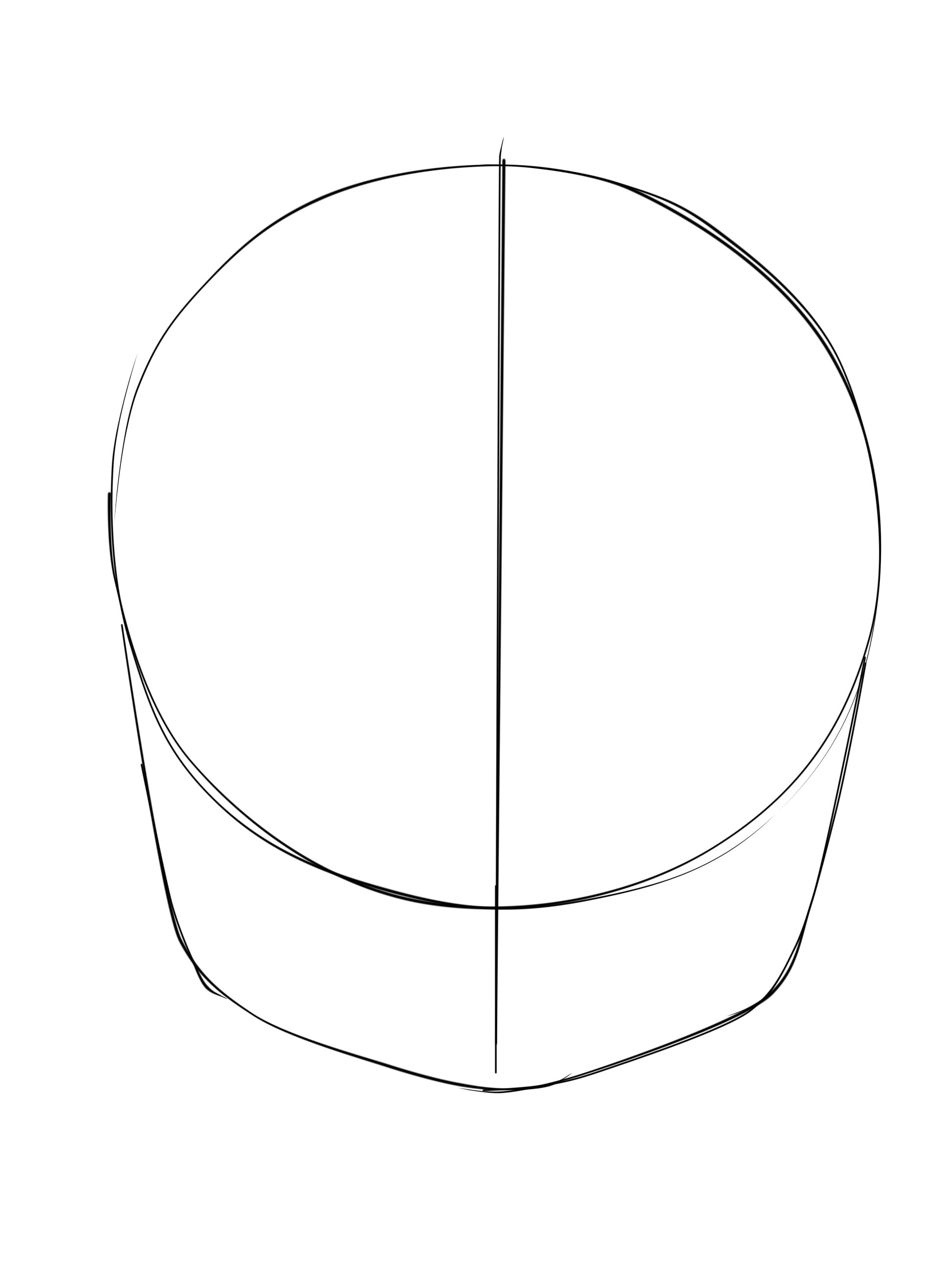 Después debes trazar una línea en el centro, de arriba hacia abajo, y que sobrepase un poco al círculo para la quijada.