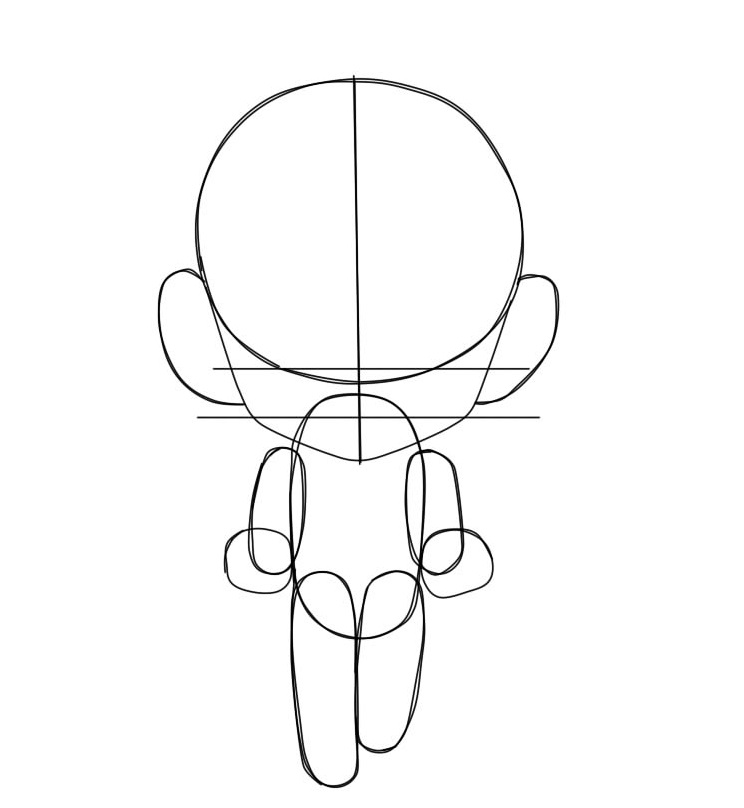 Dibuja el cuerpo haciendo unos círculos en cada partes, así como se muestra en la imagen, tienes que hacer que la porción del cuerpo sea más pequeña, recuerda que chibi es un dibujo “pequeño”