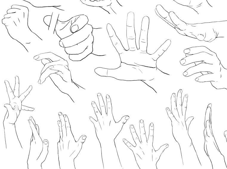 Estudia la forma y las proporciones de la mano, practica esto para dibujar dedos. Pensemos en los 3 falanges, no tienen que ser cilindros iguales conforme llegas a la punta del dedo el cilindro tiene que ser mas chico, pero si empiezas puedes hacerlo con cilindros del mismo tamaño y darles forma como tu quieras. Repite estos pasos básicos para que puedas hacerlas perfectas 😉