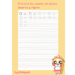 El archivo de impresión lo podrán encontrar al final de este post, se descarga e imprime fácilmente, si quieren pueden enviar sus practicas de vocales a nuestras redes sociales o etiquetarnos, ¡nos encantaría ver sus avances!