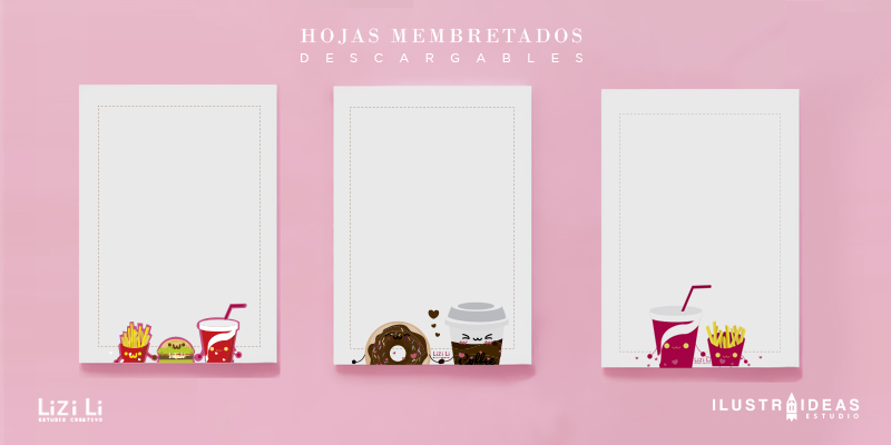 ¿Quién no ama las donuts, papitas o el café? Seguramente que tú también eres parte de las personas que aman estas deliciosas comidas rápidas, es por ello que esta vez te traigo unas hojas membretadas de comidas rápidas cute.
