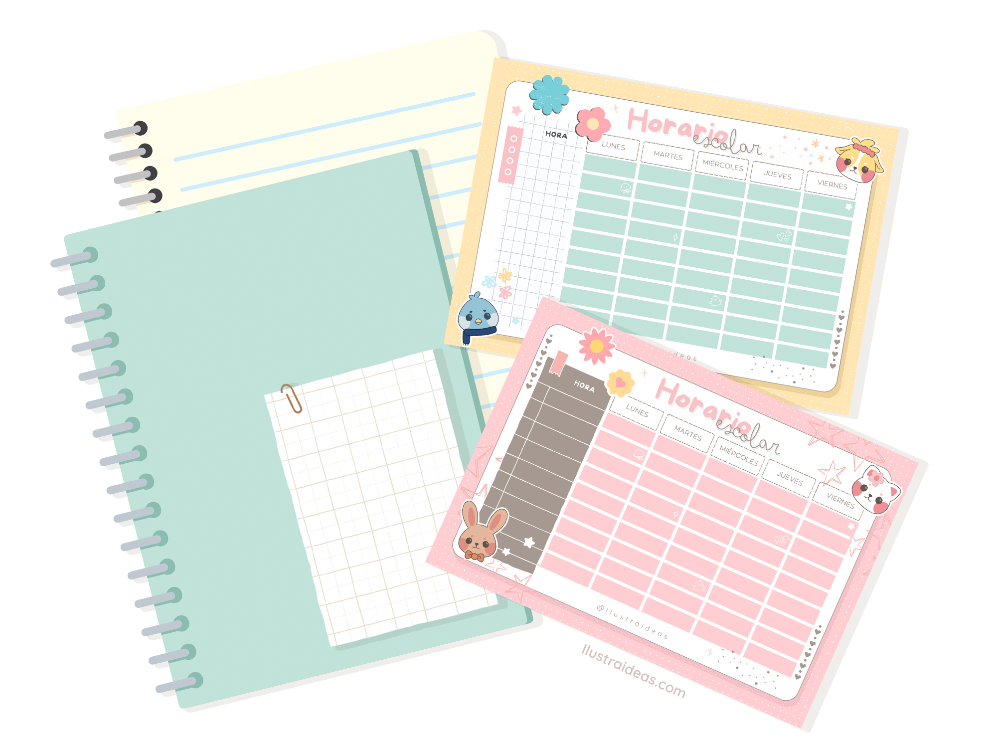 ¡Hola, hola! Seguimos en el mes de “regreso a clases” y tenemos algo especial para ti. Descarga e imprime gratuitamente estos encantadores horarios escolares, decorados con nuestras adorables mascotas: Aki, el tierno conejito; Natsu, el alegre cuyo; Haru, la traviesa gatita; y Fuyu, el dormilón pajarito.