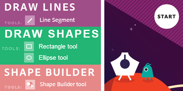 En esta oportunidad Adobe nos muestra 4 juegos de aprendizaje para Illustrator sobre algunas de sus herramientas.