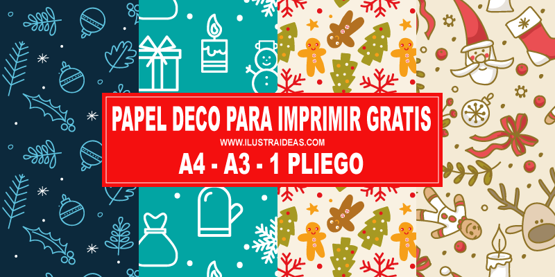 Para imprimir los papeles deco (papel de regalo) debes mandarlo a una imprenta y encargar que sea impreso en papel couché de 90gr. Los papeles deco están en el mismo archivo agrupado por tamaños para obtenerlas solo haz click en los siguientes Botones:
