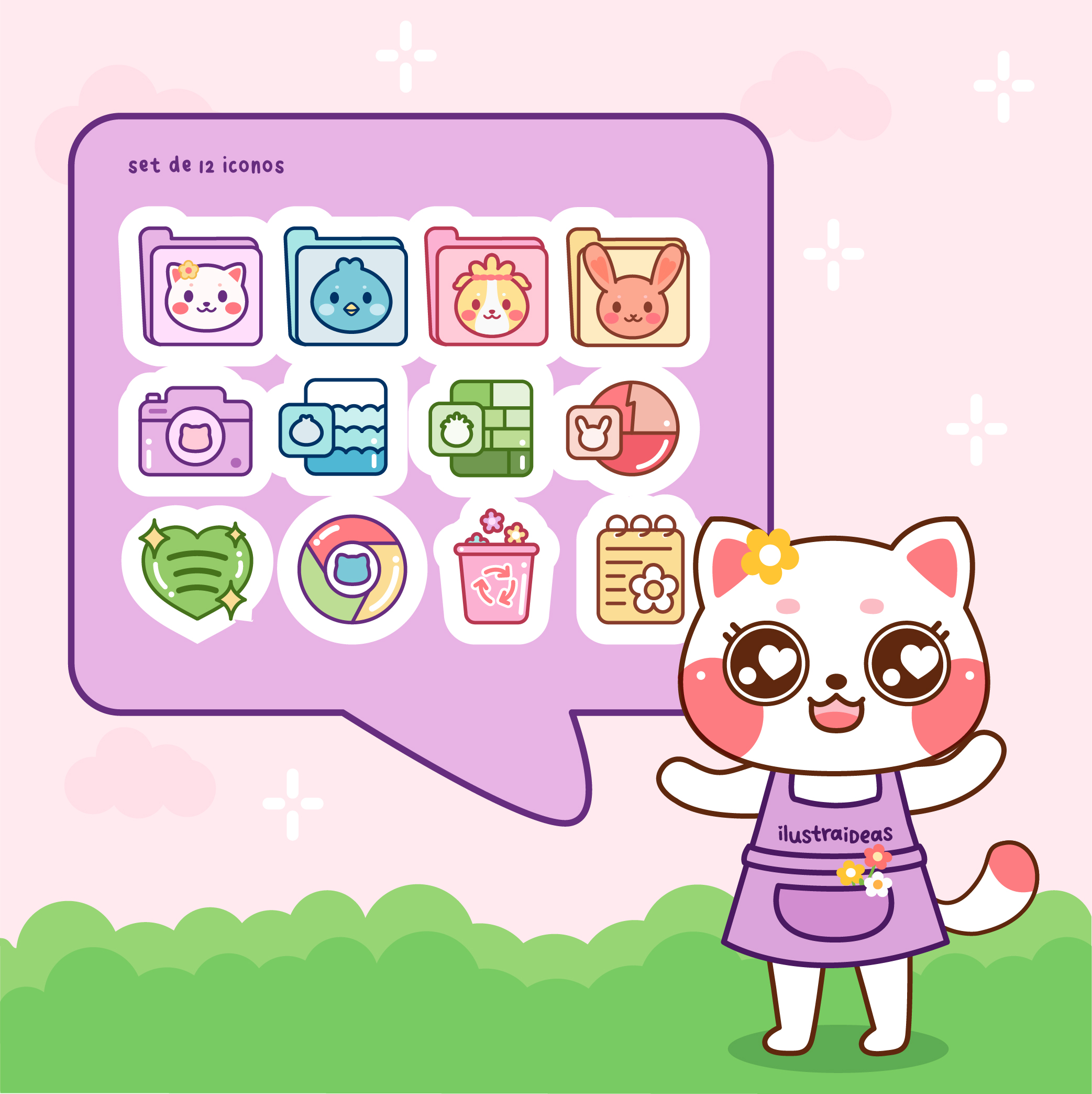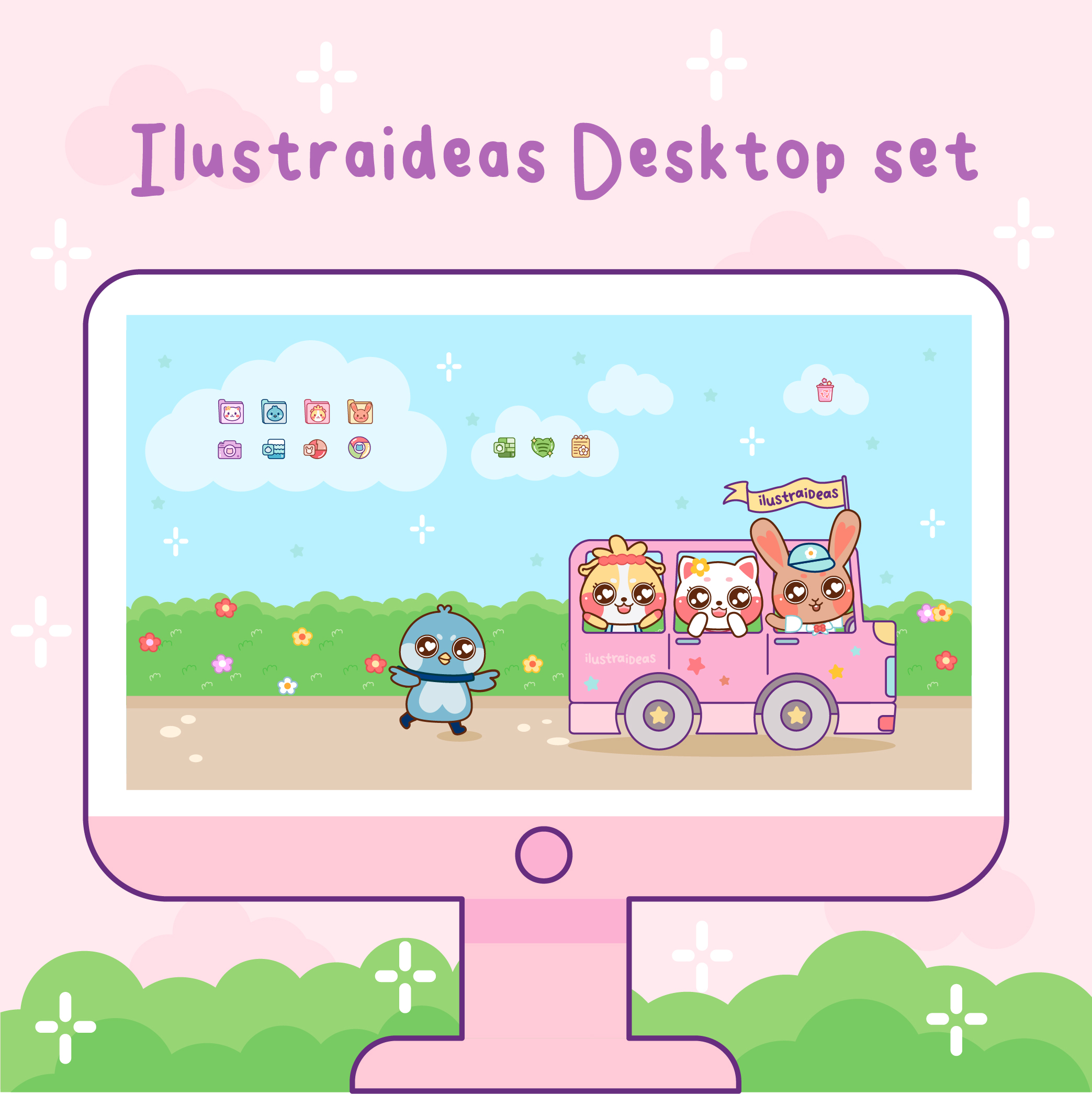 Decora tu escritorio, laptop o PC con tus programas y carpetas más importantes con este lindo desktop set con temática de ilustraideas.