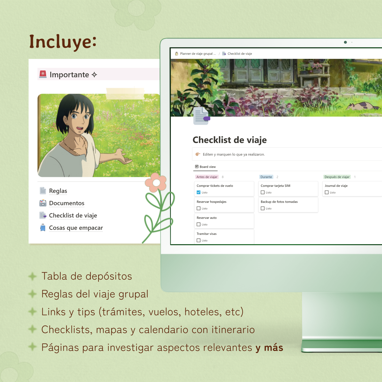 Organiza ese gran viaje junto a tus amigas o amigos. Este template les permitirá estar a todos al día de los planes, trámites en proceso, datos, itinerarios, reservaciones y más ✨️