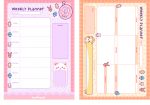 Y este organizador es en formato horizontal es ideal para que organices tu semana más detallada por el espacio de cada día y como el anterior, también tiene dos apartados de notitas uno simple y otro de Natsu salchicha.